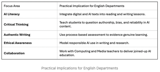 That’s why I believe the curriculum needs to go further than simply adding AI to Computing. We should be teaching AI literacy across subjects, especially within English and literacy education, where critical thinking, writing, and ethical reasoning intersect.