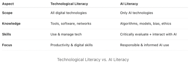 See the difference? One is about operating tools. The other is about understanding, evaluating, and engaging critically with an entirely new form of technology that claims to “think.”
